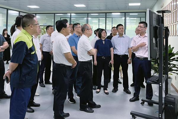在周立(lì)明董事長的帶領下,調研組一行首先(xiān)參觀了億森動力(lì)建設的工(gōng)業園區(qū)智慧展廳項(xiàng)目,隨後參觀了億(yì)森動力產品展廳(tīng)、實驗室、生產車間等,對我司自主研發的多款生態環(huán)境監測產品和應用場景給予高度評價。